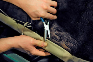 Veterán autók üléseinél, kárpitjainál alkalmazott hajlított V-U alakú kapcsok benyomására használható