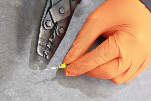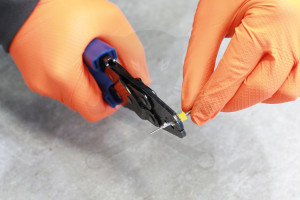 Vezetéket és a vízálló gumigyűrűt könnyen hozzászoríthatjuk a tűhegyekhez