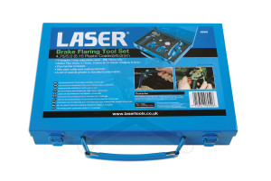 Fékcsőperemező készlet metrikus méretekkel, a gépjárművön közvetlenül történő peremezésre is alkalmas.