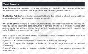 Ez a berendezés a mérés után ki is elemzi a mért értéket és egyértelmű utasítást ad a felhasználónak a fékfolyadékkal kapcsolatos további teendőkről.