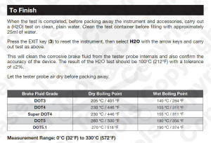 (A kétféle bázisú fékfolyadék mérés között minden esetben végezzen el egy mérést tiszta vízzel, mert a tiszta víz kitisztítja a mérőszondát.)