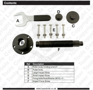 Segít eltávolítani a komplett kerékcsapágyat, majd egy másik LAS-5738-as cikkszámú beslő csapágy eltávolító célszerszám készlettel együtt használva