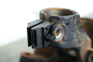 Univerzális csonkállvány széfeszítő célszerszám, amely lehetővé teszi a csonkállvány sliccelésének nyitva tartását, hogy megkönnyítse a rugóstag (gólyaláb) ki és beszerelését.