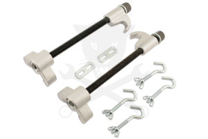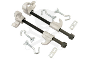 Profi minőségű kétkörmös rugóösszehúzó készlet, külön szerelhető biztosító kampókkal.
