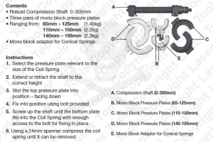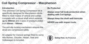 Univerzális rugóösszehúzó készlet legtöbb gépjárműhöz használható ahol Mcpherson rugókkal szerelték a gólyalábakat.