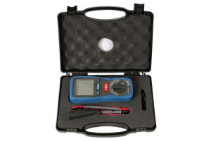 - Használati utasítással, tesztkábelekkel, hordtáskával és elemekkel szállítva