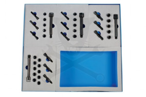 A készlet ennek érdekében nyújt segítséget a benne lévő kisebb méretű illesztőszerszámokkal, megkönnyíti a süllyesztett menetes menetek elérését.