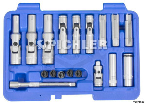 18 darabos Univerzális készlet kifejezetten izzítógyertyák szerelésére kifejlesztve.