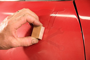 A megfolyt festék réteget, lakk hibák leszedésébe "reszelésében" segít eltávolítani a hibákat