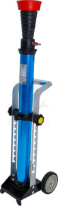 Praktikus kipufogógáz elszívó szerkezet sürített levegős működtetéssel, állítható magasságú állvánnyal.