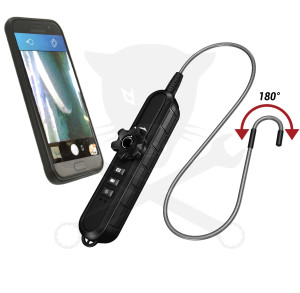 Távműködtetésű, flexibilis, egy irányban 180 fokos szögben visszahajlítható 4,5 mm-es kamerafejjel ellátott, kijelző nélküli WIFIS videoszkóp mobiltelefonos alkalmazáshoz.