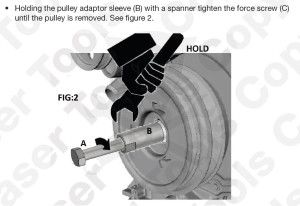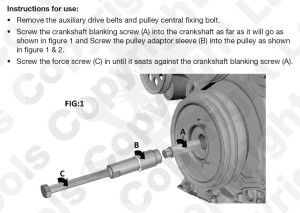 Ez az eszköz biztosítja, hogy a rezgéscsillapító eltávolítható legyen anélkül, hogy károsítaná a szíjtárcsa ragasztott gumirészét.