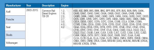 - VAG diesel 1.2, 1.6, 2.0, 2.7, 3.0, 4.0, 4.2 és a Porsche 3.0 TDi Common Rail motorok esetében.