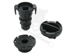 - Műanyag olajteknő aljzatához illeszkedő fejekkel, melyek a műanyag kupakba illeszkednek.