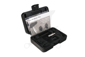 Műanyag olajteknő leeresztő speciális kialakítású csavar kiszedő készlet, többféle fejekkel.