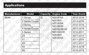 - Használható: BMW 1, 2, 3, 4, 5 sorozat, Z4, X1, X3, X4, X5.
