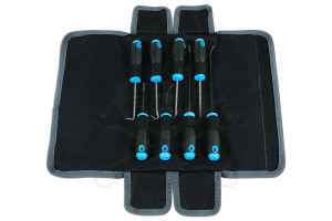 O-gyűrűk sérülésmentes eltávolításához speciálisan kialakított hornyolt csavarhúzó készlet.