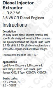 Kifejezetten 2.7 liter V6 és 3.6 liter V8 CR motorokhoz a Land Rover, a Range Rover és a Jaguar modellekhez