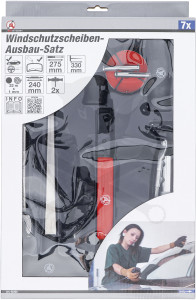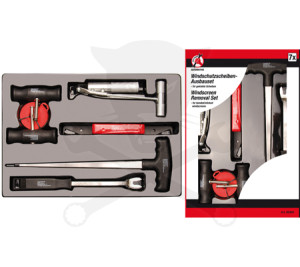Többrészes speciális szélvédő kivágó szerszám. Mindenfajta olyan vágó szerszámokkal amik a szélvédő kiszereléshez, üvegragasztó megtisztításához szükséges.