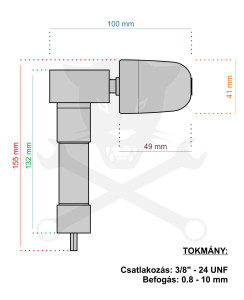 8 mm-es hatlap szár-meghajtó; fej magasság: 100 mm