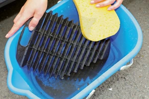 15 literes automosó vödör kivehető szennyfogó ráccsal, amely lehetővé teszi az üledék leülepedését és megakadályozza a szennyeződések újrakeveredését a vízben.