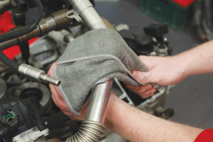 Mikroszálas törlőkendő, közkedvelt a motorok, csövek, mosás utáni vízcseppek törlésére.