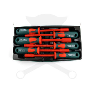 6 darabos 1000 V-os szigetelt VDE csavarhúzó készlet 6 lapú dugófej végződésekkel.