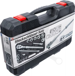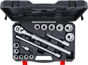 - kompakt készlet 12 db 19 - 50 mm-es dugókulccsal, 2 db 200 és 400 mm-es hosszabbítóval és egy 20 mm-es (3/4") és 12,5 mm-es (1/2") dugókulcs adapterrel