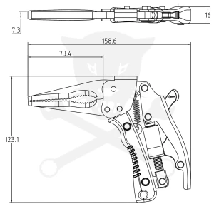 - Hosszú és vékony pofákkal 70°-ban hajlított