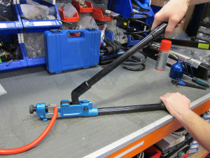 Kétkaros a nagyobb átmérőjű kábeleket is könnyedén saruzhatunk - a hosszú erőkar könnyebb lenyomást biztosít.