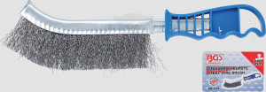 Nyeles véggel kialakított hajlított drótkefe kékszínben.
