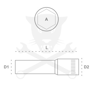 Hatlapú, hosszított dugókulcs 1/4"-os csatlakozással.