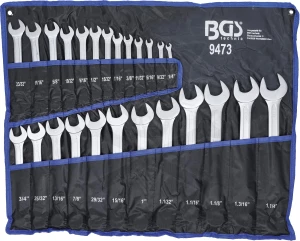 25 részes amerikai COLOS méretezésű 1/4" - 1-1/4" csillag villáskulcs készlet, praktikus fali tartóban.