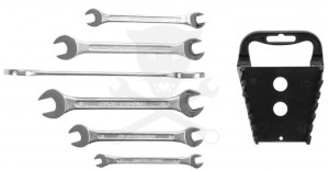 6 darabos kétoldalas villás-villáskulcs készlet praktikus kis fali műanyag tárolóban
