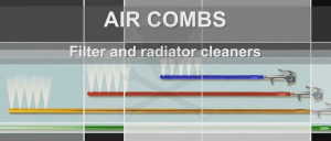 Amerikai fejlesztésű és szabadalommal védett AIR COMB - TM márkanevű, piros színű 24"-os hosszúságú speciális szűrő és radiátor oldal-kifúvásos tisztító pisztoly.