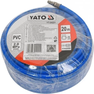 Professzionális, megerősített pneumatikus tömlő préselt gyorscsatlakozókkal. 8 mm belső átmérővel és 20 méter hosszban, megerősített PVC-ből készült. A tömlő ellenáll az alacsony és magas hőmérsékletnek, így a műhelyen kívül is használható. Nélkülözhetetlen eszköz minden műhelyben vagy gyártóüzemben.