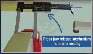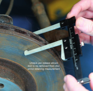 - A speciális állkapocs kioldó mechanizmusa lehetővé teszi a féktárcsa vastag méret leolvasásának megtartását a rögzítőcsavar kioldása nélkül.