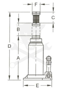 - Dugattyú működési hossza: 0-100 mm (B méret)