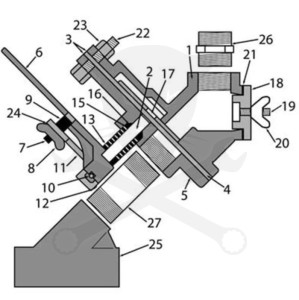 A Clemco homokszóró tartály alján található FSV típusú komplett Homok Szabályozó szelep egység.