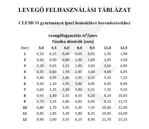 A levegő szükséglete nagy mértékben függ a használatban lévő fúvóka belső átmérőjétől.