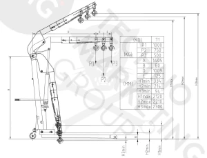 - Maximális emelési magasság: 2120 mm (max. 1000 kg teherbírásnál)