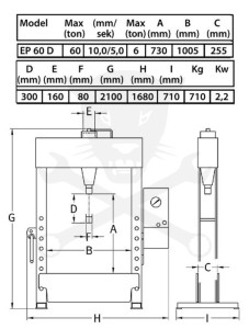 Elektro - Hydraulikus 60 tonnás állványos szerelő prés professzionális-ipari kivitelben.