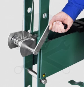 - Beépített fékezett csörlő, ami nagy segítség dolgoónak a munkaasztal egyszerű fel-le mozgatásához