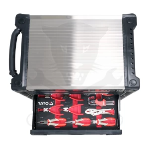 - Az új YT-55308 szerszámos szervizszekrény egyedi kialakítású zárszerkezettel van ellátva amely megakadályozza az egynél több fiók egyidejű kinyitását.