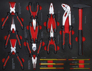 - A felső 4 db fiók 1:1-es méretű EVA habszivacsos tálcás komlett szerszámkészleteket tartalmaz.