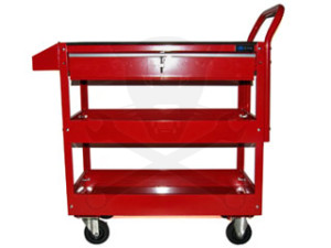 Profi minőségű gurulós szerelőkocsi 2 polccal + 1 zárható fiókkal + 1 felső szivacsozott munkarésszel.