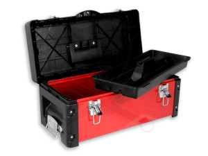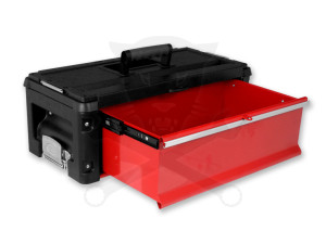 4 részes szerszámos láda kihúzható hordozó füllel (320mm) mely 3 pontban fixálható, valamint 2 kerékkel (O120mm).