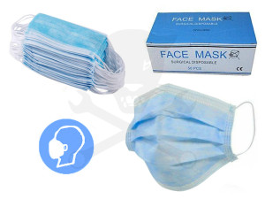 - Csomagolási doboz mérete: 100 x 75 x 190 mm (1 doboz = 50 db kék-fehér színű orvosi, sebészeti maszkot tartalmaz.)