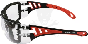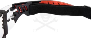 A védőszemüveg rögzíthető pánttal a szem védelmére szolgál kézi és mechanikai munkák, például csiszolás, fúrás stb. során. Jól használható aktív emberek számára is, például kerékpározás vagy túrázás közben.