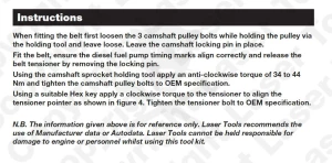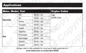 Ez a célszerszám készlet lehetővé teszi, hogy a Hyundai és a Kia 1.6 AdBlue® dízelmotor vezérlését rögzítse, amikor a vezérműszíj cserét végzünk a motoron.